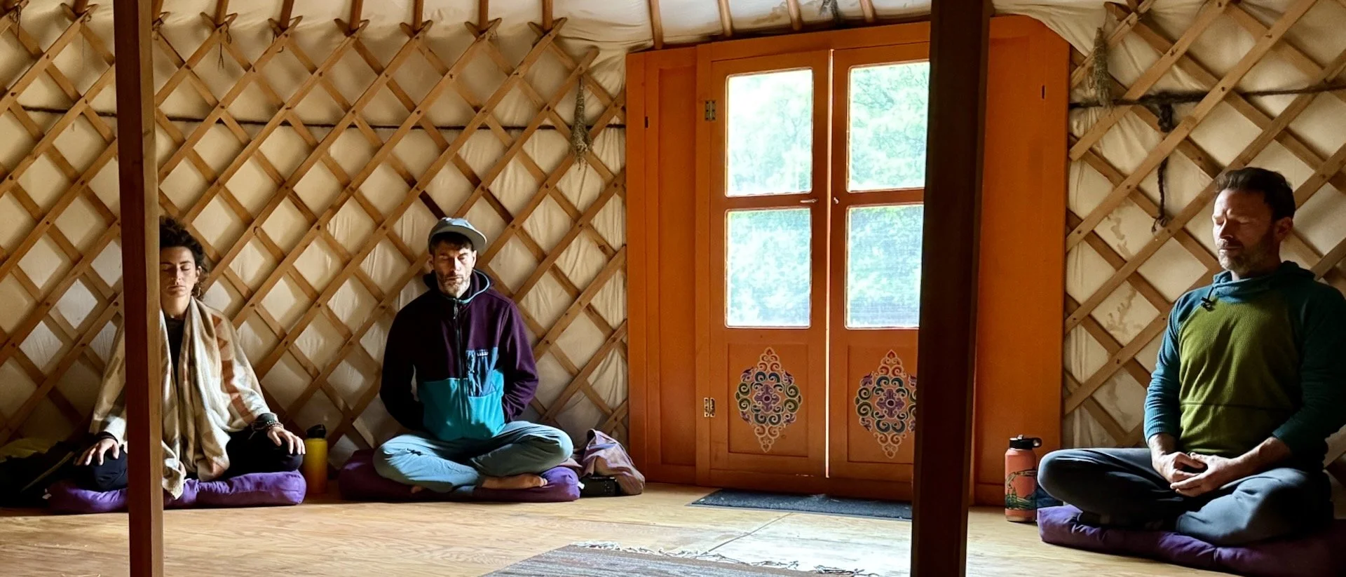Interested in meditation? We warmly welcome you to join us for our weekly group meditation and discussion sessions in the supportive natural setting of our yurt beside the creek. Rooted in the Buddhist tradition, and open to everyone regardless of background, belief, or prior experience.
